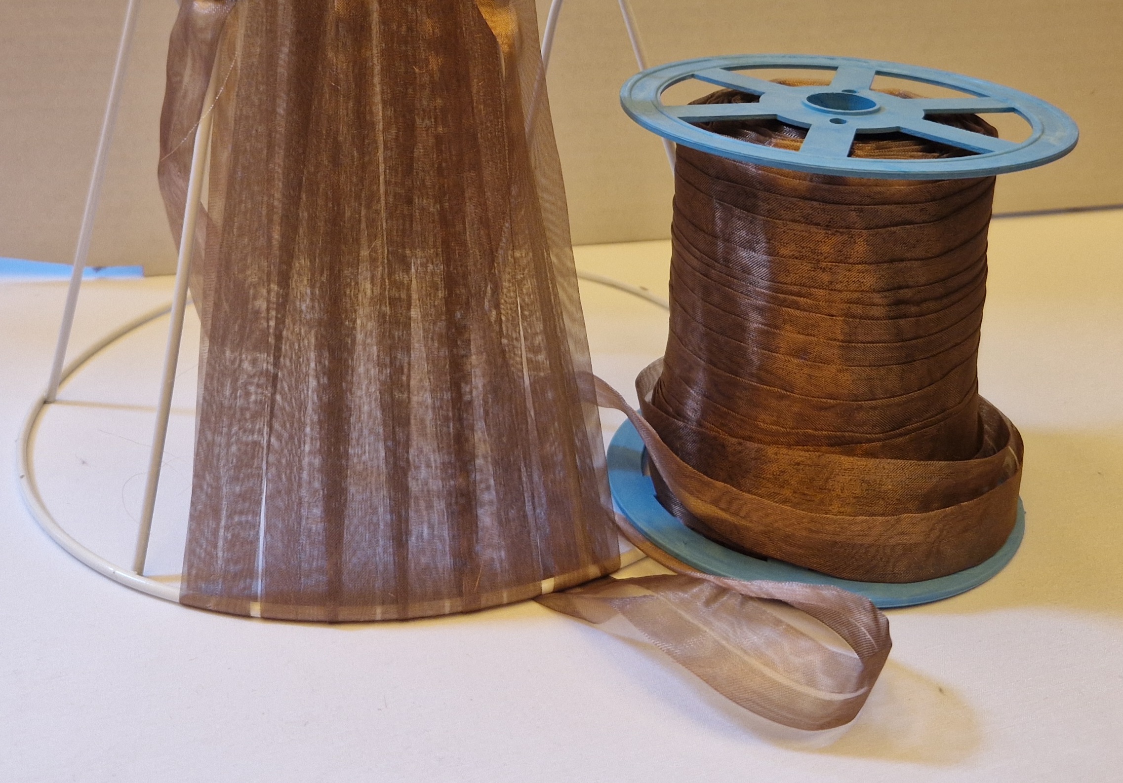 Strona główna » STELAŻE I MATERIAŁY » Taśmy do abażurów » Taśma z organzy 20mm- brązowa (57m)